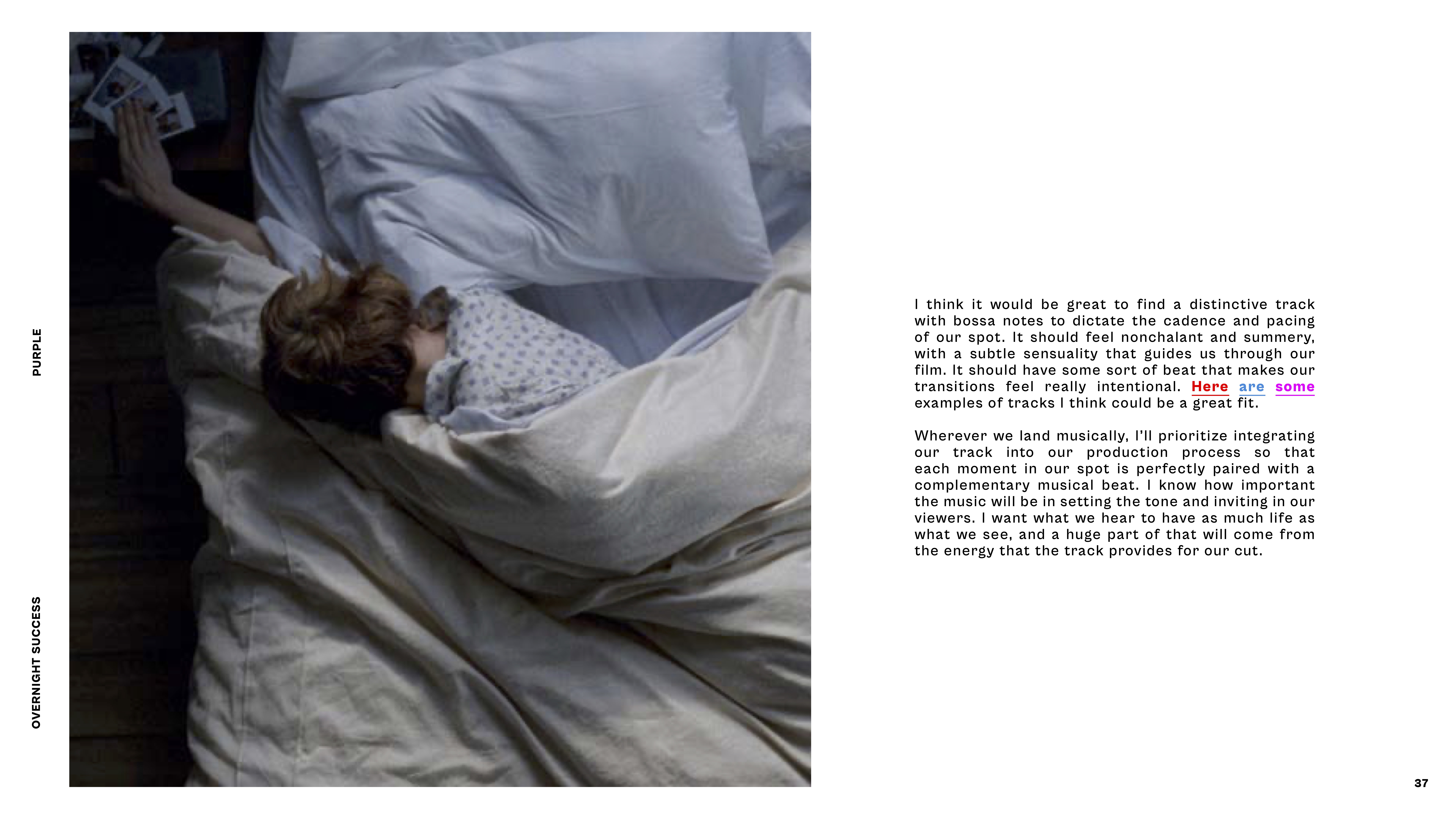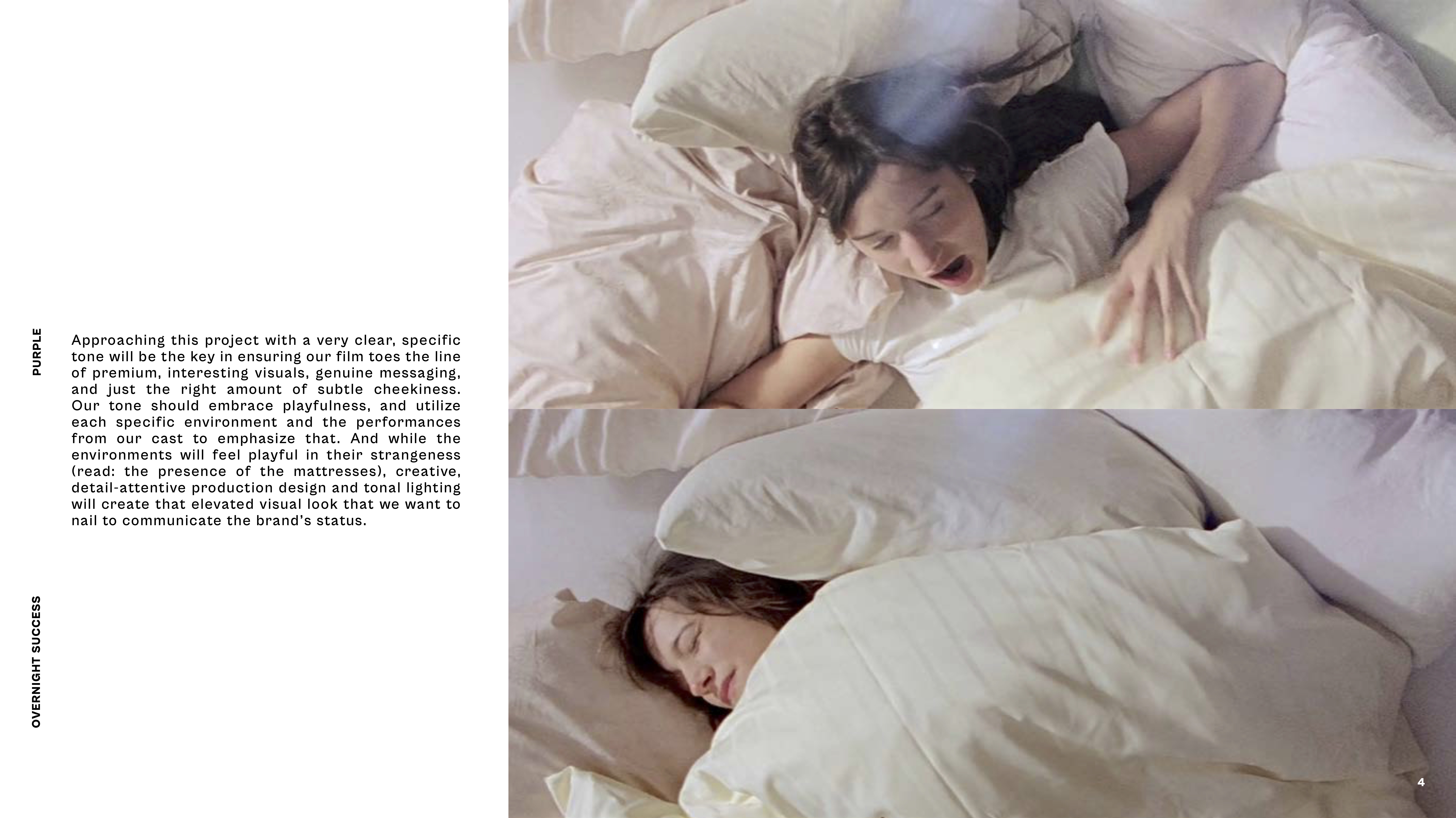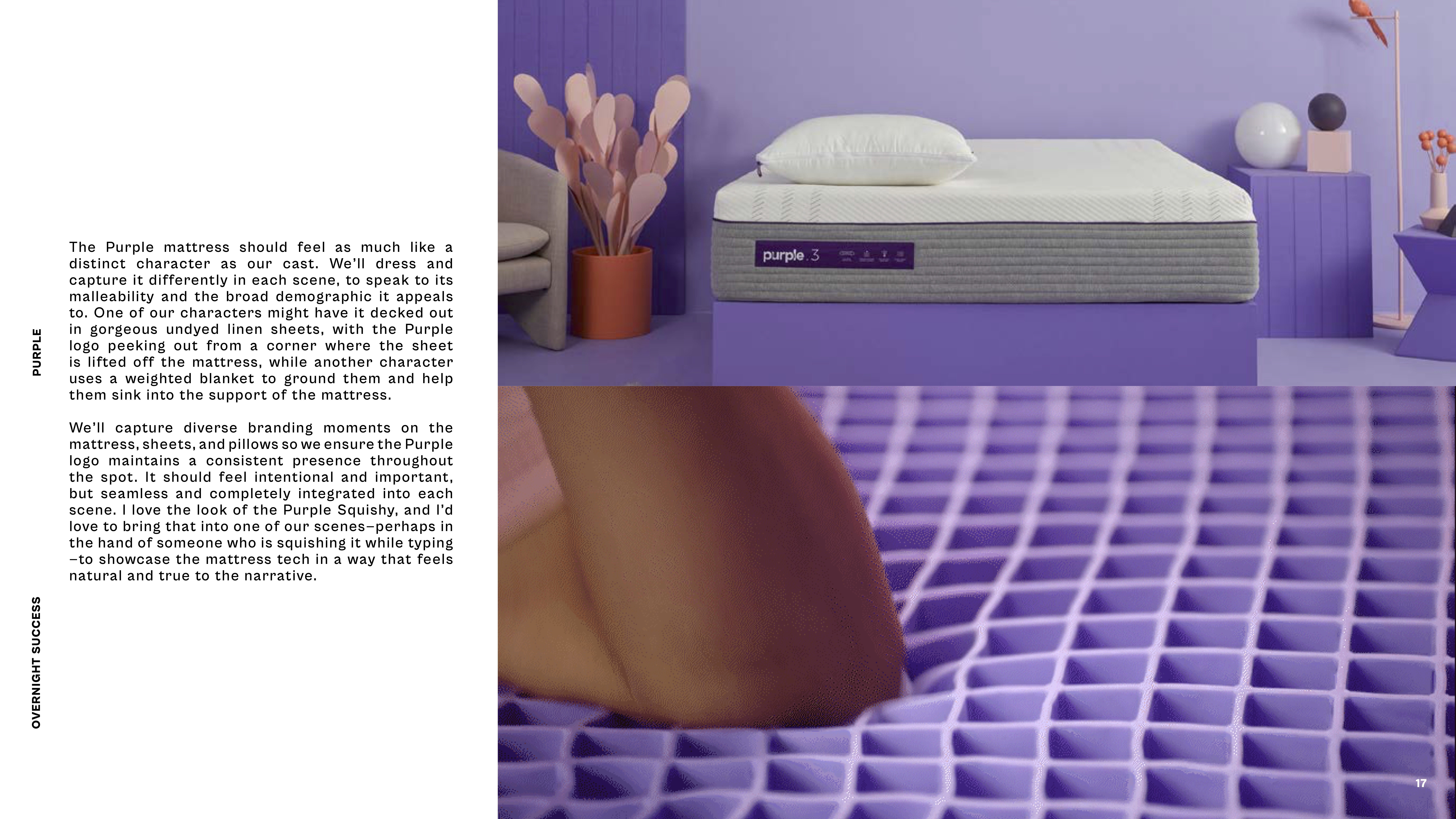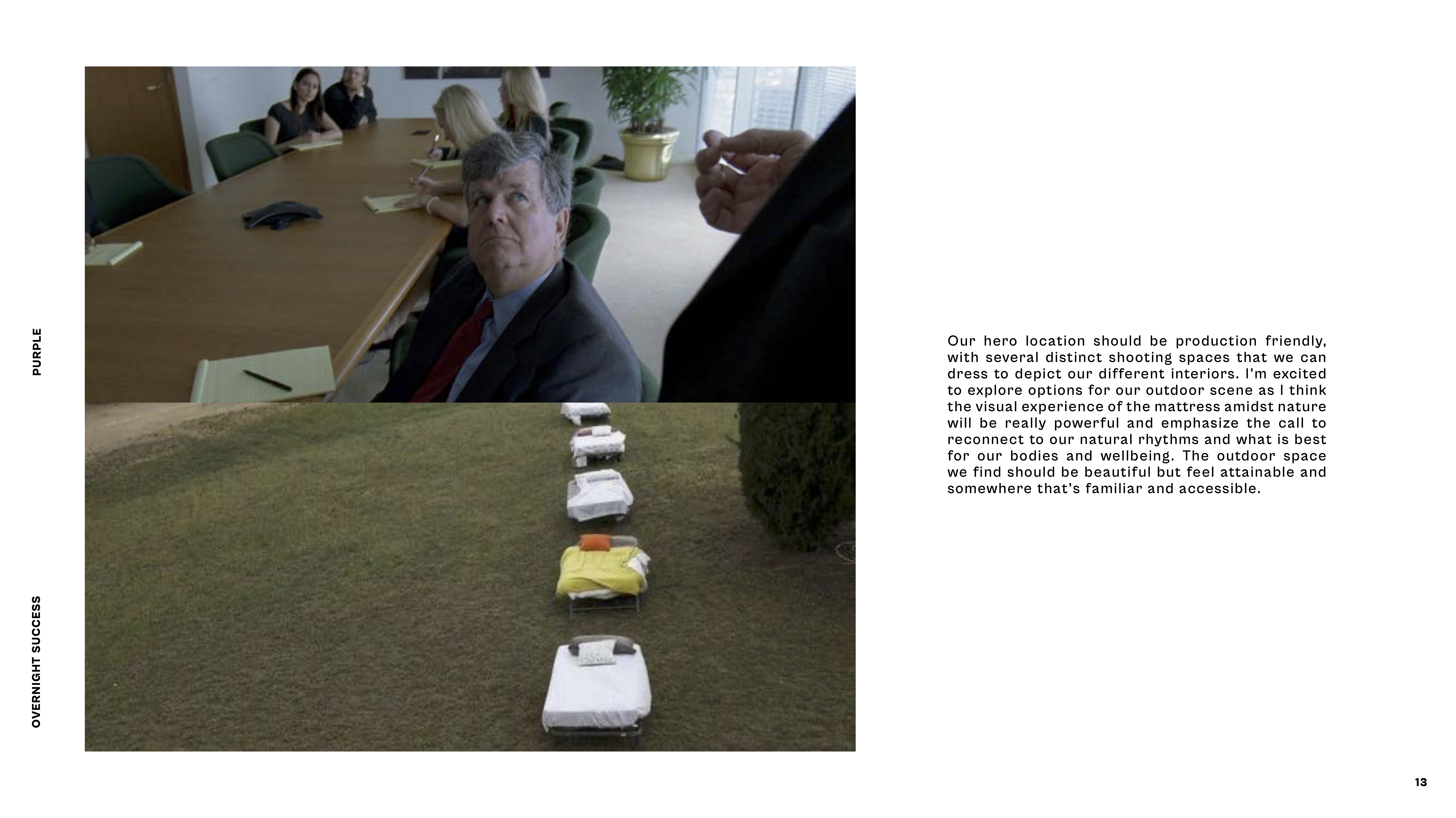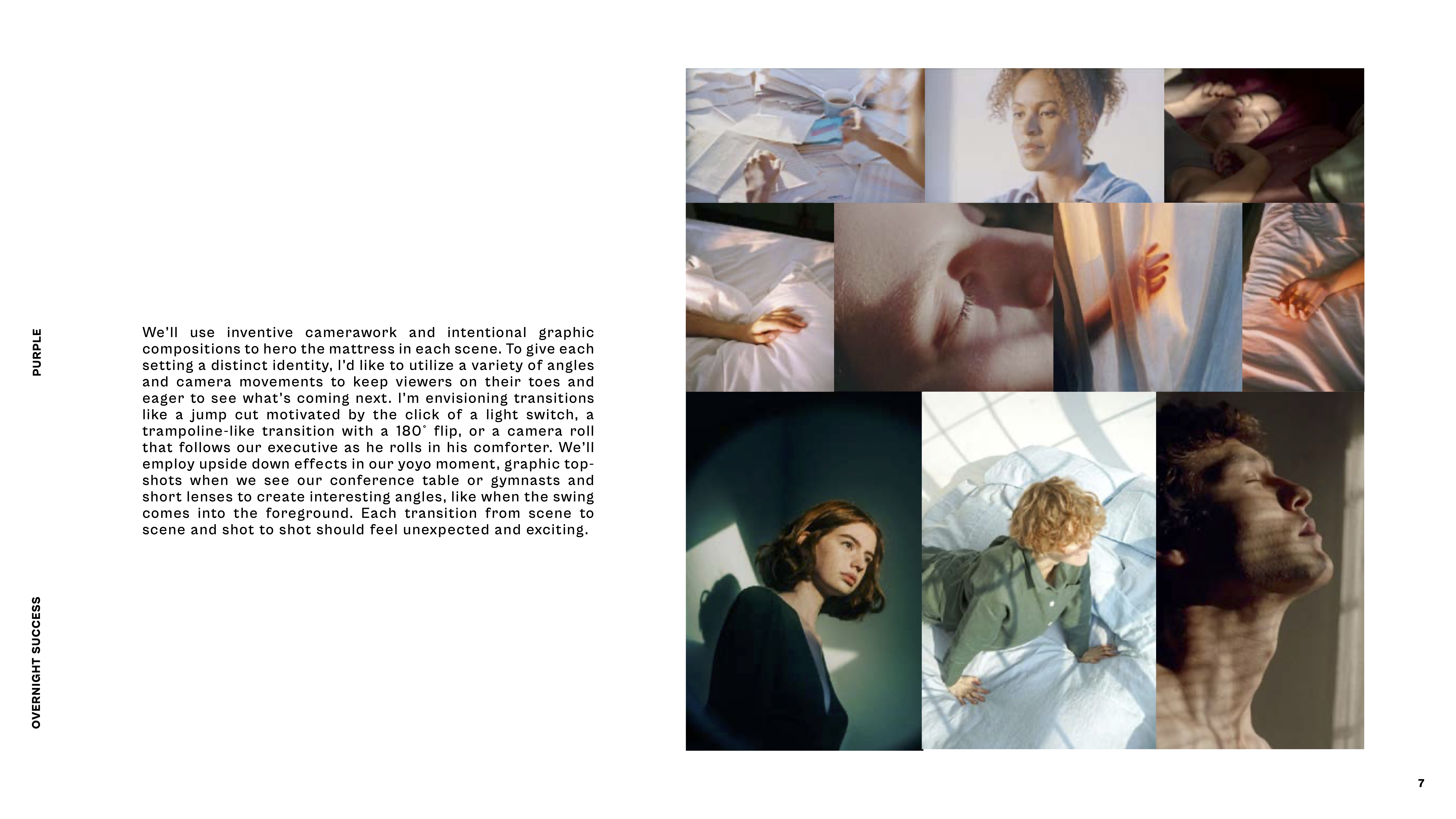 We want to capture our viewers immediately and hook them in with the authenticity and specificity of each character. We’ll do this through a killer cast of distinctive, memorable characters who can deliver captivating performances. Our cast should feel visually distinct and we will cast with attention to diversity of age, gender, and race to create an ensemble who reflect the real Purple market. Each of our talent should feel relatable but effortlessly cool in their connection to their own identity and have unique characteristics that make them stand out. Maybe our entrepreneur has beautiful freckles or glasses, or our instructor has an interesting hairstyle. We want people who have charisma, stand out, and feel naturally genuine on-camera. Our executive might be an inventor of a revolutionary product that has propelled his company from the basement of his mom’s house to Fortune 500 level, while our instructor could be someone who is back on track to qualify for the Olympics after a terrible injury derailed her career. These characters are free thinkers and trailblazers. They’re determined and committed. They don’t worry about what their peers think of them. They light the way for others, and we should feel that from the energy our cast exudes.
