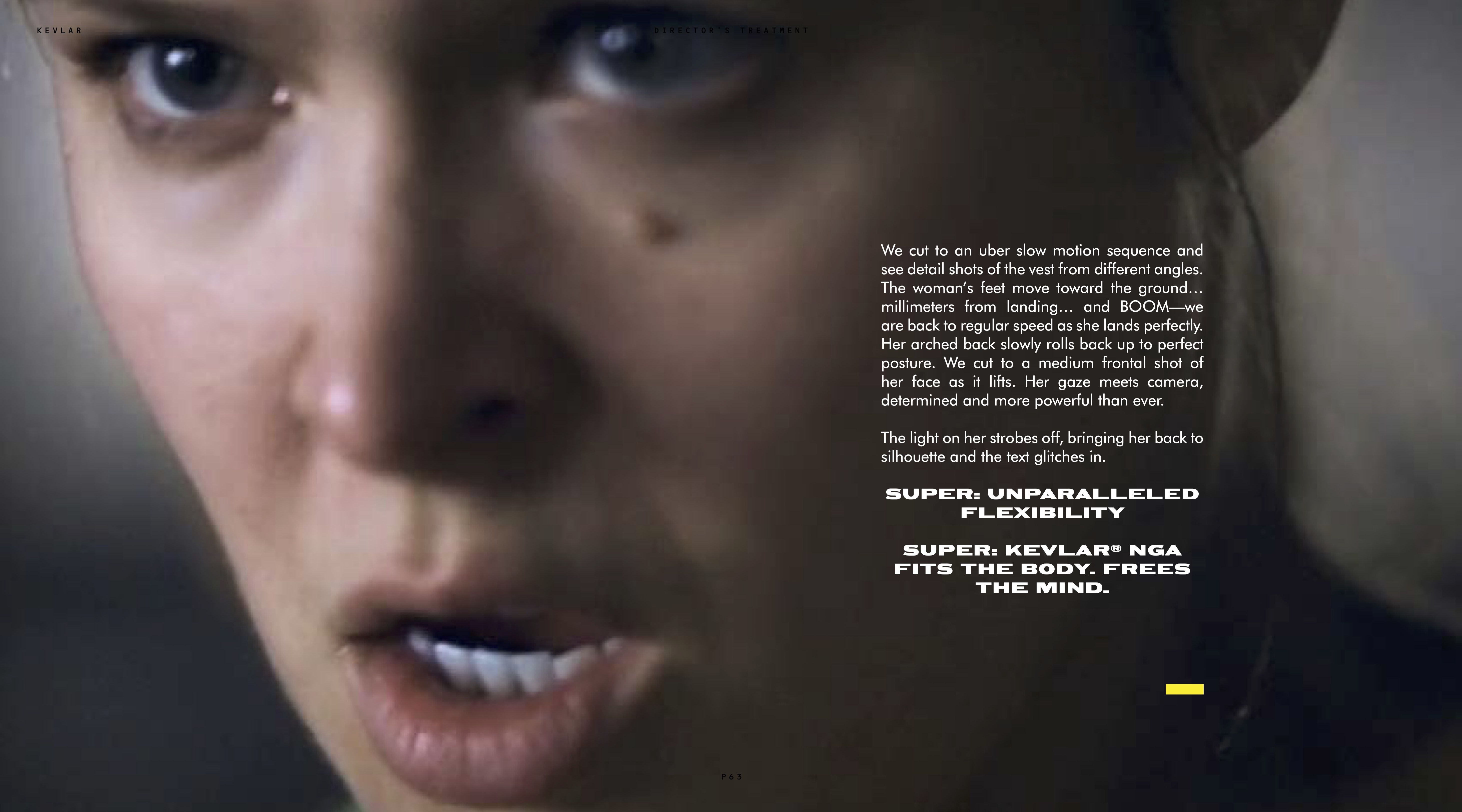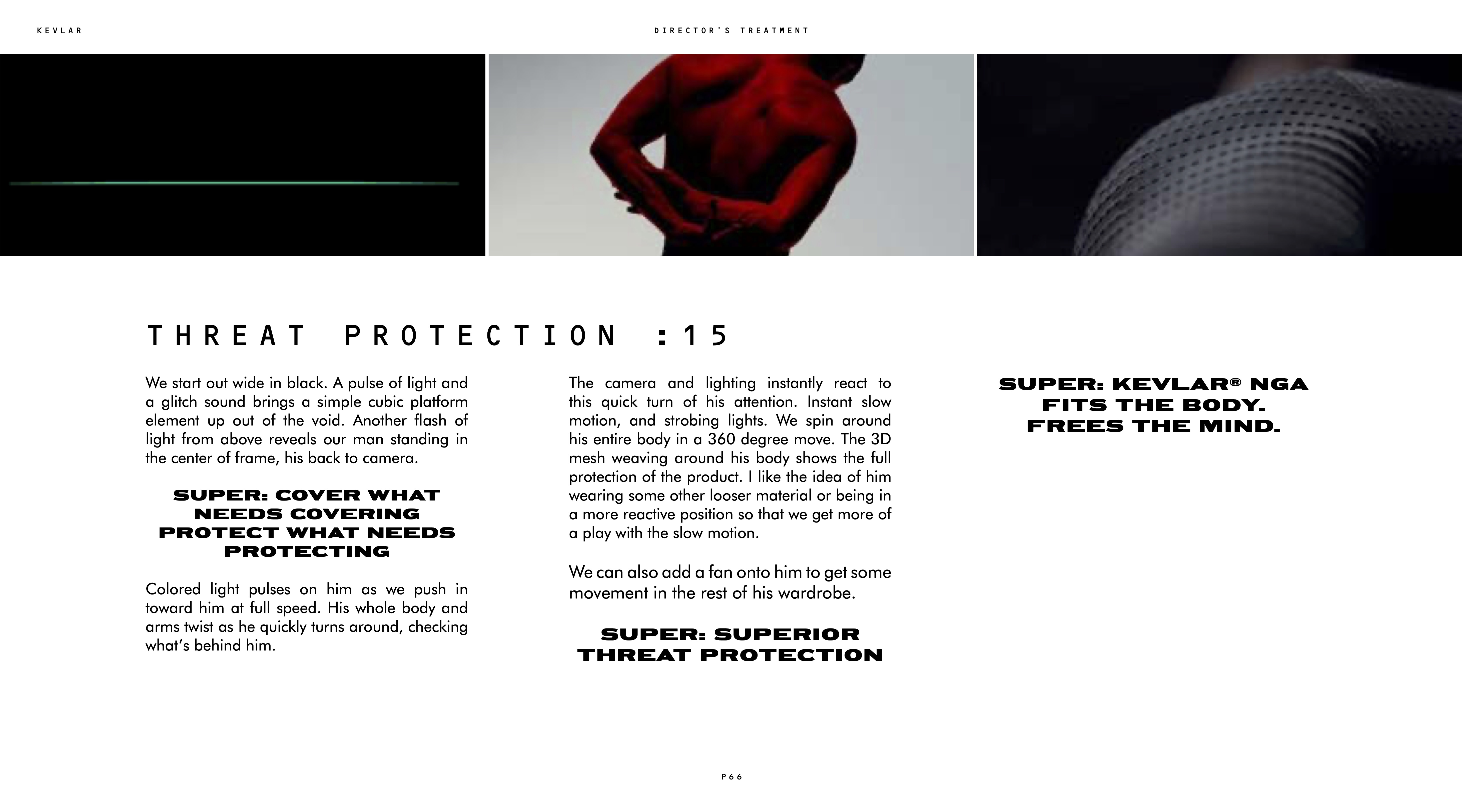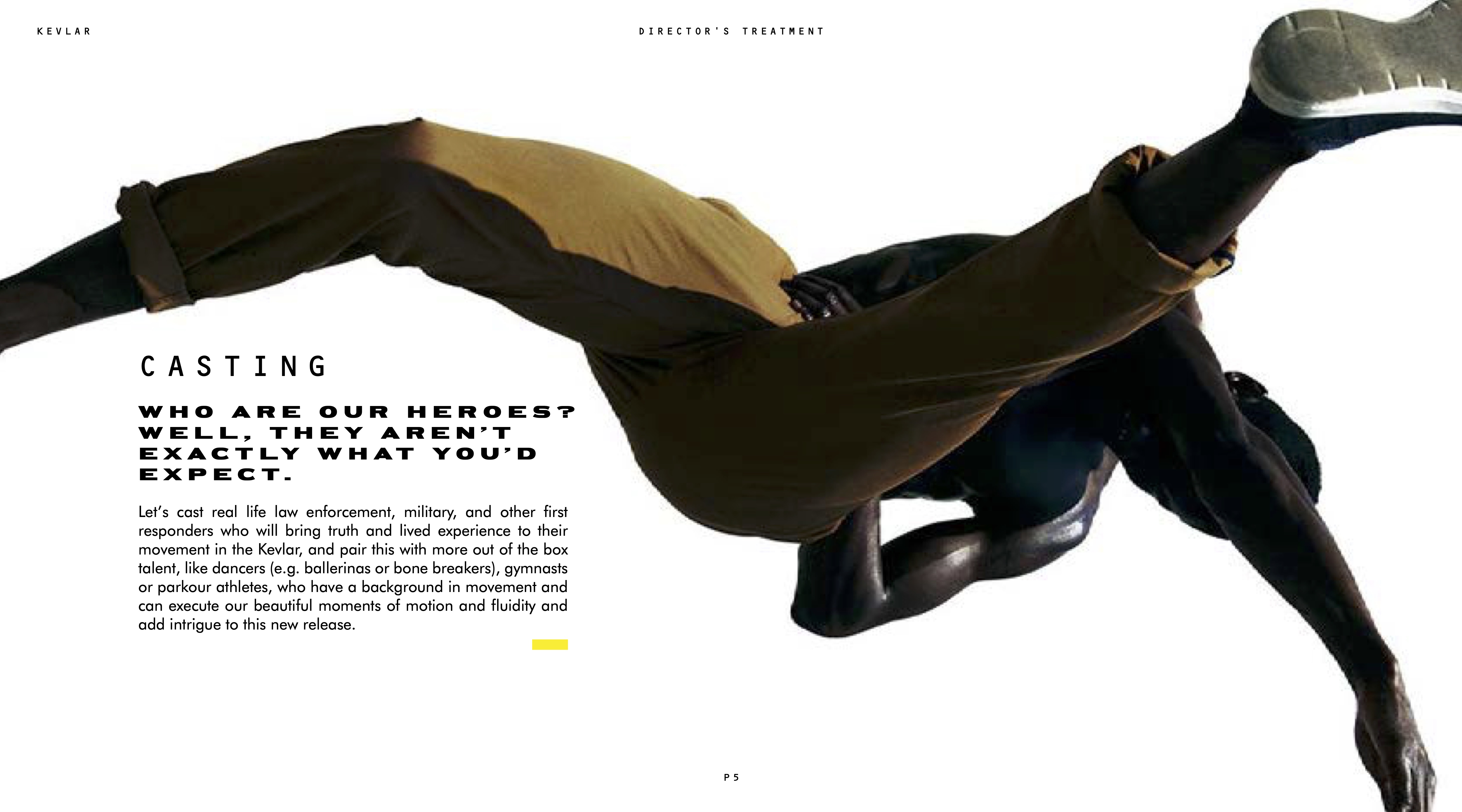 This new Kevlar product is the definition of cutting edge. It's an innovation that is about to revolutionize the future of protection, and it should claim hero status through each moment of our films. Our cast’s focused and confident performances will speak to the ease and peace of mind that the vest’s groundbreaking design offers its wearers.