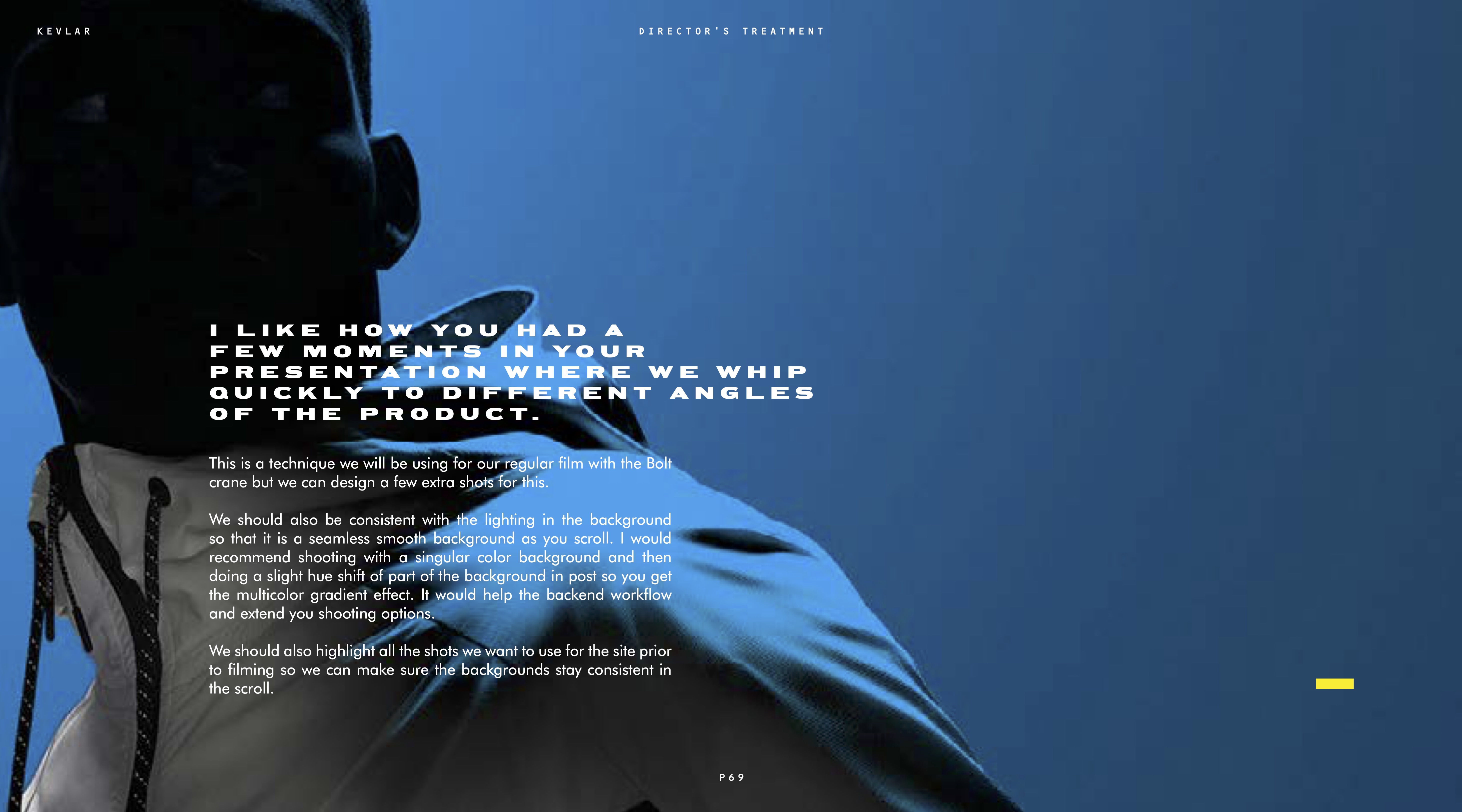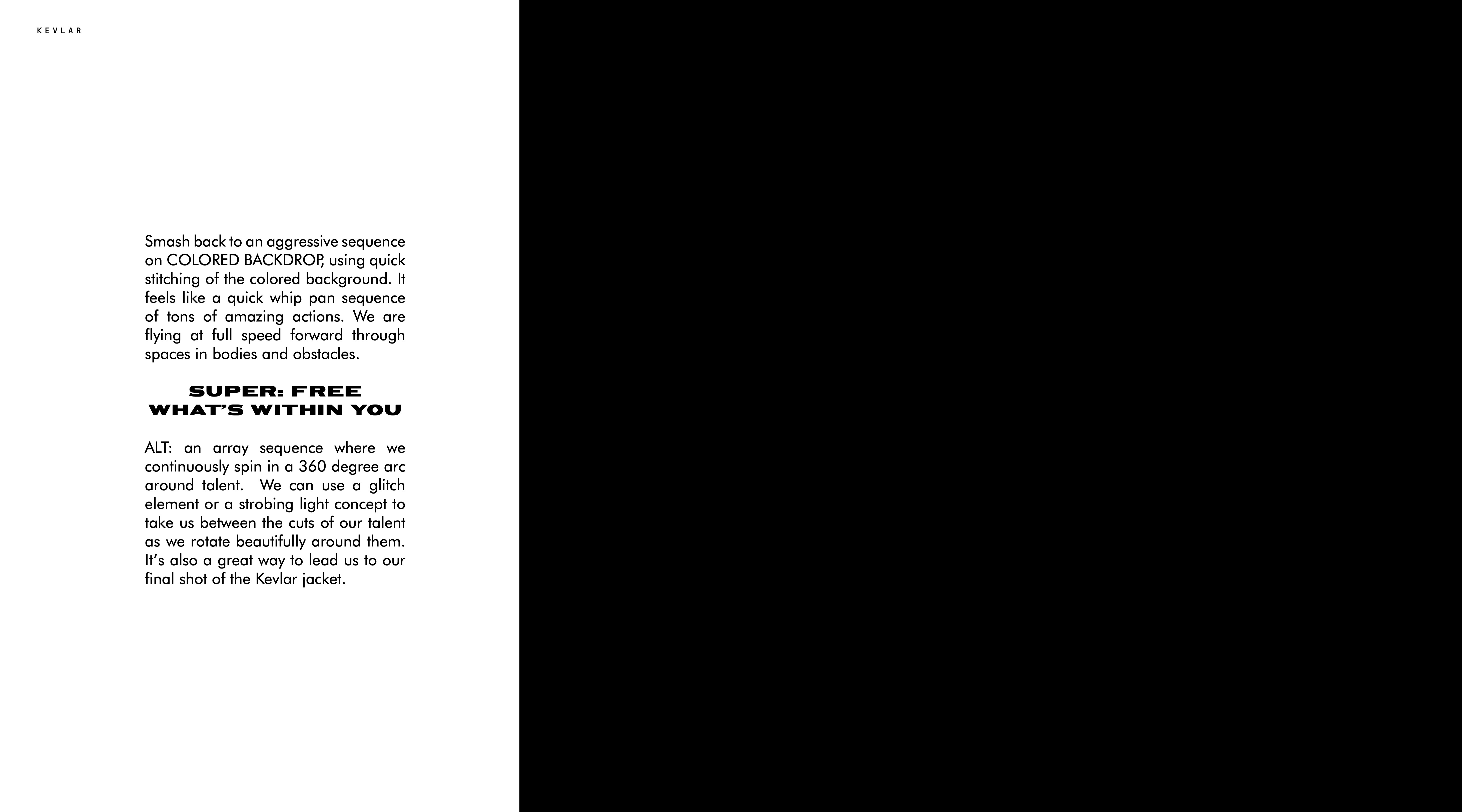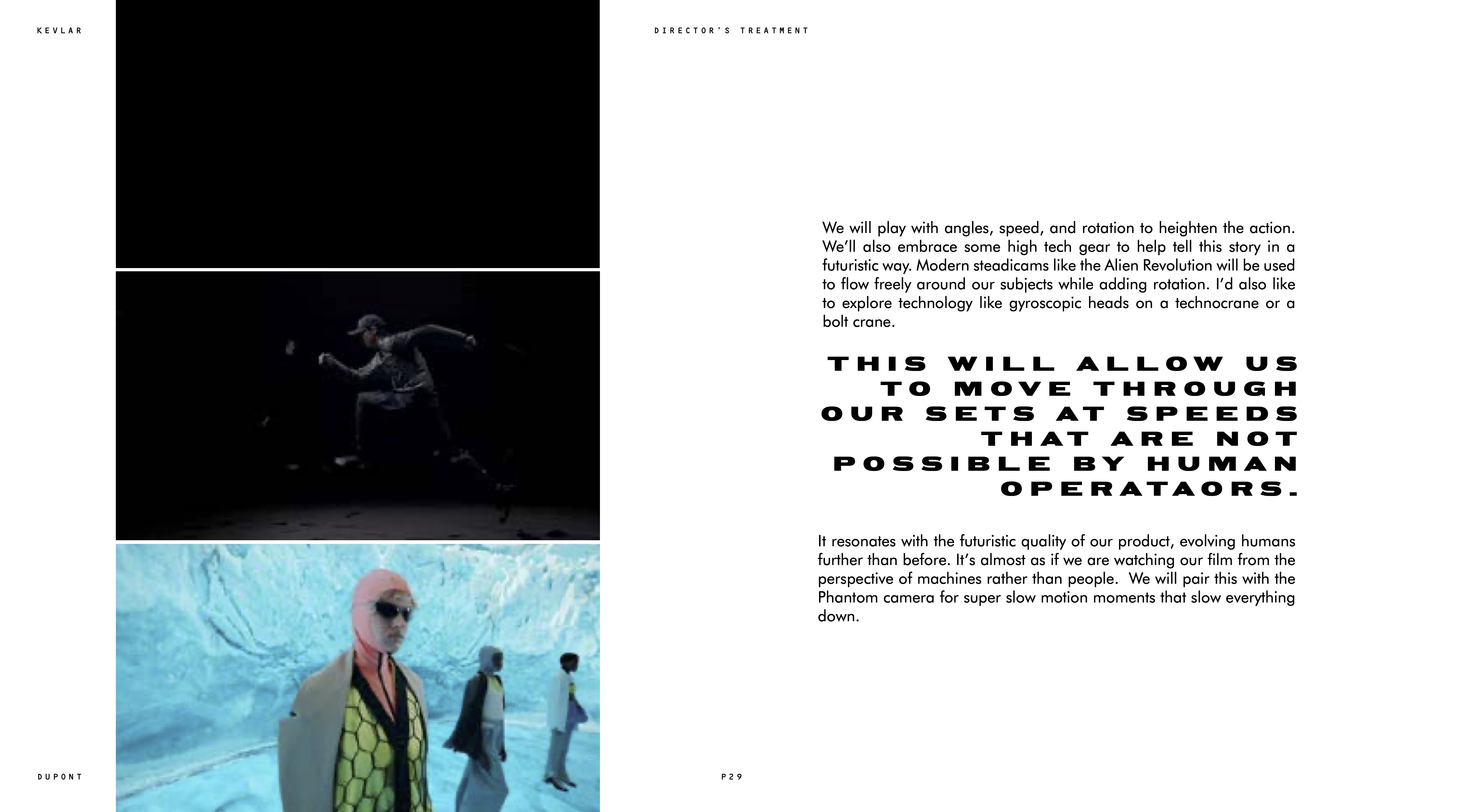 This new Kevlar product is the definition of cutting edge. It's an innovation that is about to revolutionize the future of protection, and it should claim hero status through each moment of our films. Our cast’s focused and confident performances will speak to the ease and peace of mind that the vest’s groundbreaking design offers its wearers.