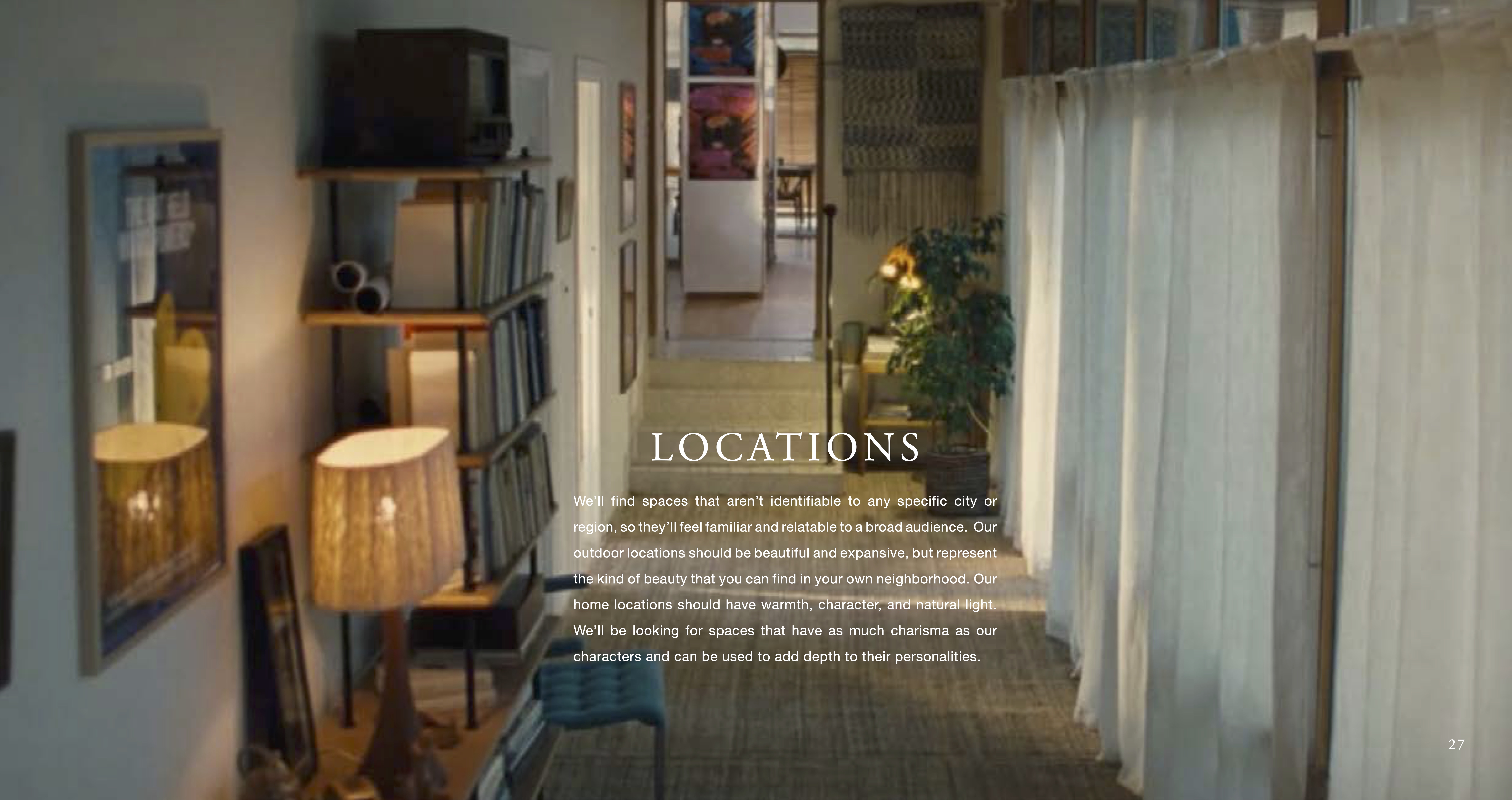 The production design for these spots is so exciting. It’s where we’ll get the chance to build out each of our unique worlds with the detail and specificity that will make each place come alive and give them that awe-factor. This is the place where we can lean into the abstract tone in our scripts and really bring it all to life. Each space should feel like a quirky interpretation of a familiar environment.